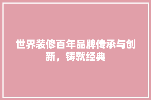 世界装修百年品牌在传承与创新中,不断铸就经典。它们以品质、设计、服务为核心竞争力,赢得了消费者的信赖和市场的认可。在未来的发展中,世界装修百年品牌将继续传承经典,创新前行,为人类创造更加美好的居住环境。