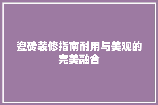 在瓷砖装修中,既要关注其美观性,又要注重其耐用性。通过以上分析,相信您已经对瓷砖的种类、特点、选购技巧和保养方法有了更深入的了解。希望本文能为您在瓷砖装修过程中提供有益的参考。